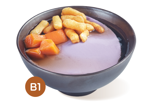 เต้าฮวยมันม่วง + ทาโรบอลมิกซ์ + มันส้ม